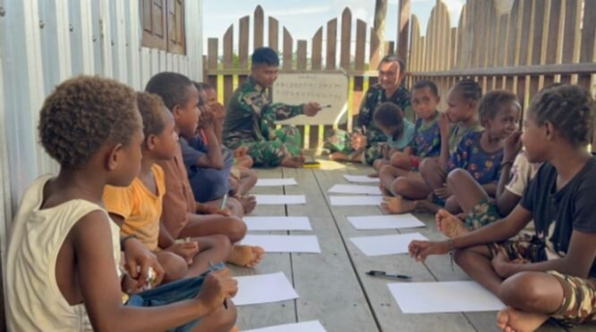Cerdaskan Generasi Muda Papua, Satgas Rajawali Gelar Belajar Bersama di Kampung Mabul