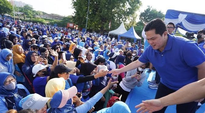 Sebelumnya Erick Thohir selaku Menteri BUMN menghadiri acara Senam Massal di Cibubur Jakarta Timur. Menteri BUMN Erick Thohir memenuhi ajakan Ketua Umum PAN Zulkifli Hasan untuk ‘membiru’ pada Minggu pagi (23/10/2022).
