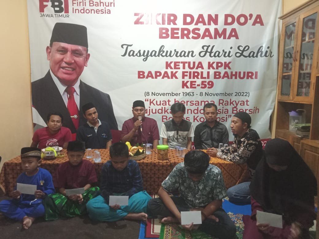 Koordinator Sahabat FBI Jawa Timur, Ahmad Jamaluddin mengatakan rangkaian acara yang dilaksanakan mulai dari Khotmil Qur’an atau Khatam Qur’an, doa bersama, santunan anak yatim dan pemberian Paket sembako kepada dhuafa dilakukan sebagai bentuk dukungan moril sekaligus syukuran atas ulang tahun Ketua KPK, Firli Bahuri.