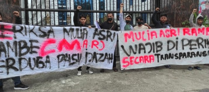 Dalam aksinya, puluhan massa mahasiswa bersatu yang datang sekitar pukul 10..00 Wib dengan berboncengan puluhan sepeda motor, setibanya di depan gerbang Kantor Kejatisu, langsung membentangkan spanduk berisikan “Mulia Asri Rambe wajib diperiksa secara transfaransi dan Periksa Mulia Asri Rambe (MAR) Terduga Palsu Ijazah”.
