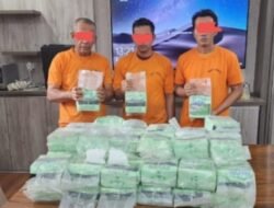MEDAN – Satuan Reserse Narkoba Polrestabes Medan kembal sikat tiga orang pelaku narkoba jenis sabu jaringan internasional Malaysia – Indonesia di berbagai tempat Kabupaten Batubara. Polisi berhasil menyita barang haram itu sebanyak 65 kilogram narkotika jenis sabu.