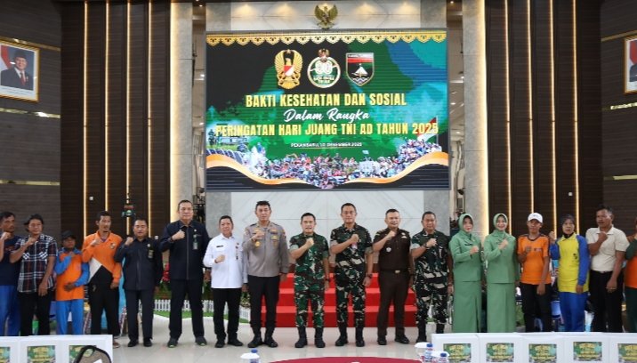 PEKANBARU – Kodam XIX/Tuanku Tambusai menyelenggarakan Bakti Kesehatan dan Sosial dalam rangka memperingati Hari Juang TNI AD Tahun 2025, Rabu (10/12/2025). Kegiatan yang mengusung tema “TNI AD Manunggal dengan Rakyat untuk Indonesia Bersatu, Berdaulat, Sejahtera dan Maju” berlangsung di Aula Kaharudin Nasution Makodam XIX/Tuanku Tambusai, Jalan Mayor Ali Rasid, Kota Pekanbaru.