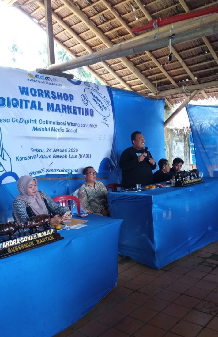 Pernyataan tersebut disampaikannya saat menghadiri Workshop Digital Marketing yang diselenggarakan oleh mahasiswa Kuliah Kerja Nyata (KKM) Kelompok 5 Desa Sukarame, Sekolah Tinggi Ilmu Administrasi Publik (STISIP) Banten Raya, pada Sabtu (24/1/2026) di Lokasi Konservasi Alam Bawah Laut, Carita.
