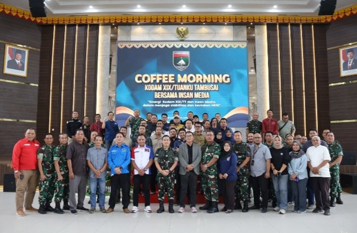 RIAU – Kodam XIX/Tuanku Tambusai menggelar kegiatan Coffee Morning bersama insan pers Provinsi Riau pada Rabu (28/1/2026) pukul 08.00 WIB di Gedung Kaharuddin Nasution, Markas Kodam XIX/Tuanku Tambusai, Pekanbaru. Kegiatan bertujuan mempererat sinergi, komunikasi, dan kemitraan antara TNI Angkatan Darat dengan media massa.