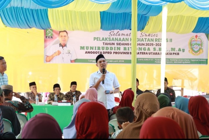 PALUTA – Anggota DPRD Provinsi Sumatera Utara dari Fraksi Partai Kebangkitan Bangsa (PKB), Muniruddin Ritonga, S.H.I., M.Ag, melaksanakan kegiatan Reses II Tahun Sidang II 2025–2026 di Desa Balimbing Julu, Kecamatan Padang Bolak Julu, Kabupaten Padang Lawas Utara (Paluta), Sabtu (07/02/2026).