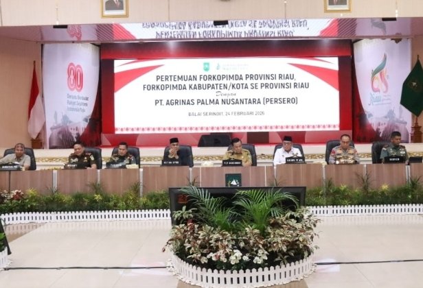 PEKANBARU, TintakitaNews.com – Pertemuan Forum Koordinasi Pimpinan Daerah (Forkopimda) Provinsi Riau dan Forkopimda Kabupaten/Kota se-Provinsi Riau bersama PT Agrinas Palma Nusantara diselenggarakan pada Selasa (24/2/2026) di Gedung Daerah Balai Serindit, Jalan Diponegoro, Kota Pekanbaru. Kegiatan yang dihadiri oleh berbagai pemangku kepentingan bertujuan menyamakan persepsi terkait pengelolaan aset hasil penertiban kawasan hutan.