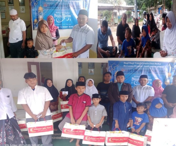 TANGERANG, TintaKitaNews.com – Pimpinan Redaksi (Pimred) Suarabantenpost.com Rudi bersama jajaran anggota media melaksanakan kegiatan bakti sosial berupa pembagian 500 takjil, santunan anak yatim piatu dan dhuafa, serta acara buka bersama pada hari Sabtu (15/03/2026) di Kantor Redaksi.