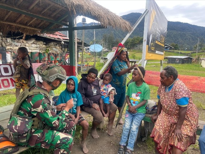 Satgas Yonif 323 Melayani Masyarakat Yang Sakit di Titik Kuat Gome