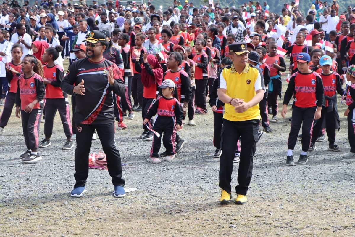 Menyemarakkan Hari Kemerdekaan RI Ke-79, Kapolres Puncak Jaya Ikuti Senam Bersama Pemerintah Daerah dan Para Pelajar