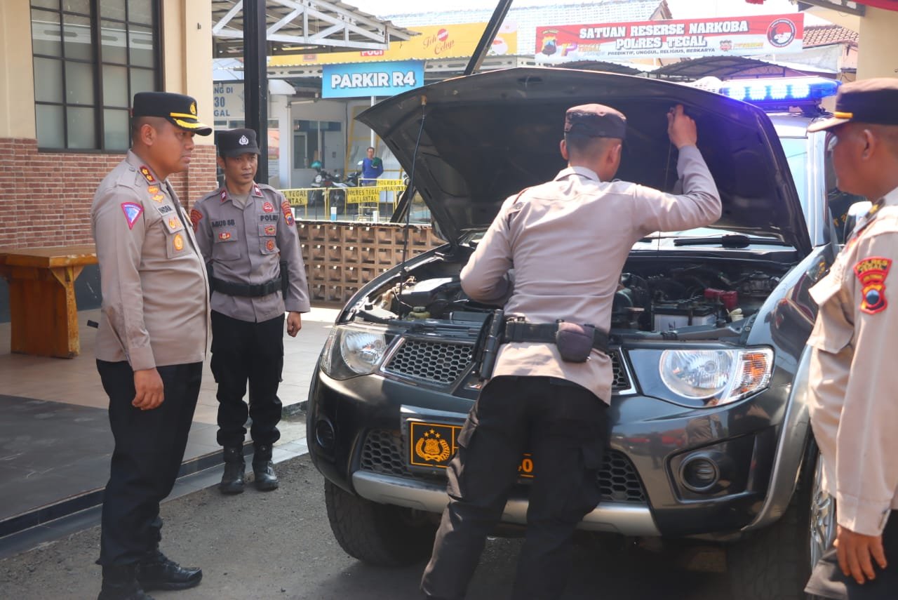 Kapolres Tegal Lakukan Pengecekan Kesiapan Kendaraan Operasional Menjelang Pemilukada
