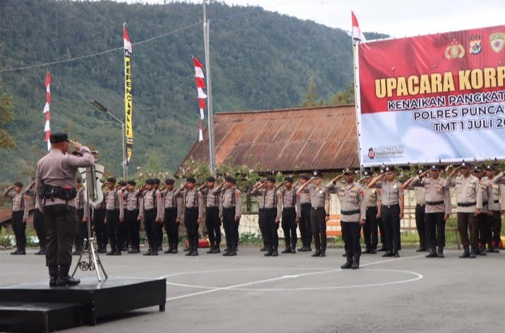 Polres Puncak Jaya Gelar Upacara Korp Raport Kenaikan Pangkat Periode 1 Juli 2024