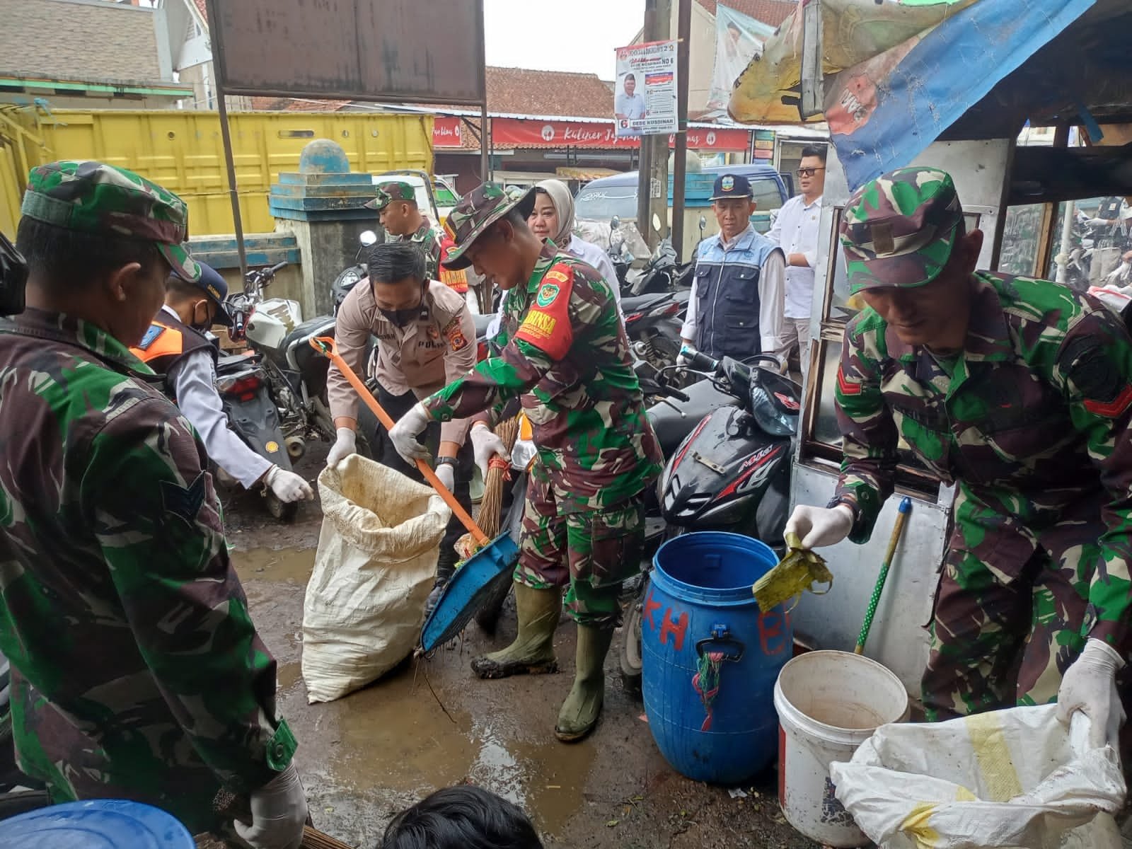 Karya Bakti Pembersihan Pasar Untuk mengantisipasi Penyakit dan Banjir oleh Koramil 1113/Bayongbong Kodim 0611/Garut