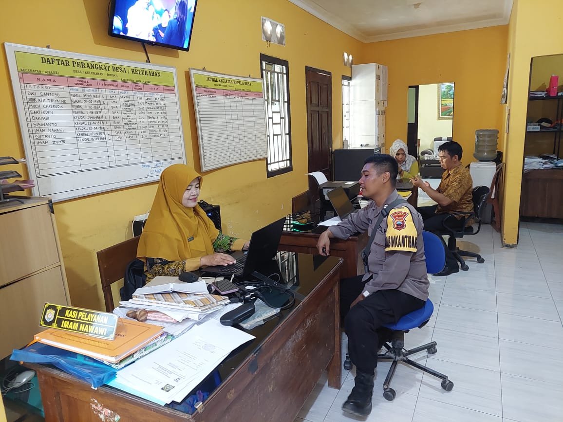 Sampaikan Pesan Pemilu Damai, Bhabinkamtibmas Polsek Weleri Sambangi Desa Binaan