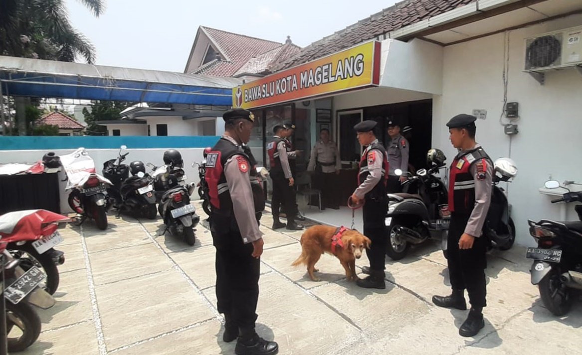 Anjing Pelacak Polres Magelang Kota Diterjunkan untuk Sterilisasi KPU dan Bawaslu