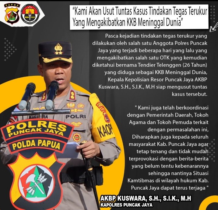 Kapolres Puncak Jaya : Kami Akan Menyelidiki Tindakan Anggota Dilapangan Yang Menembak Mati OTK Diduga KKB