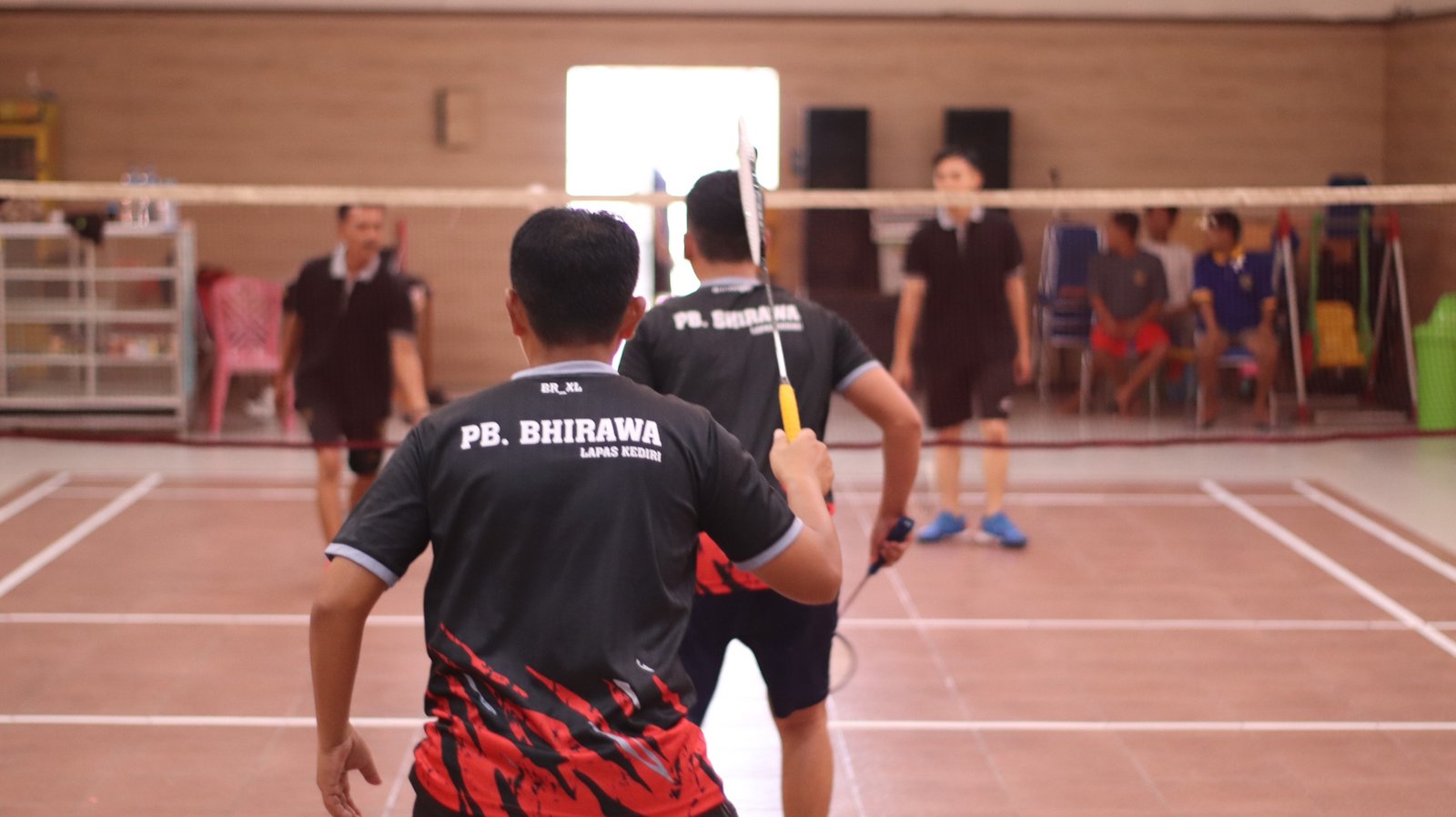 Tak Ingin Kalah, Plt Kepala Lapas Kediri Tunjukan Skill Badminton Antar Pegawai