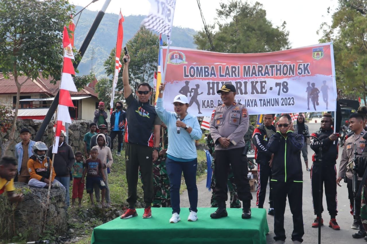 Sinergitas TNI-POLRI Amankan Pergelaran Lomba Lari Marathon Dalam Rangka HUT RI KE-78 Di Kabupaten Puncak Jaya